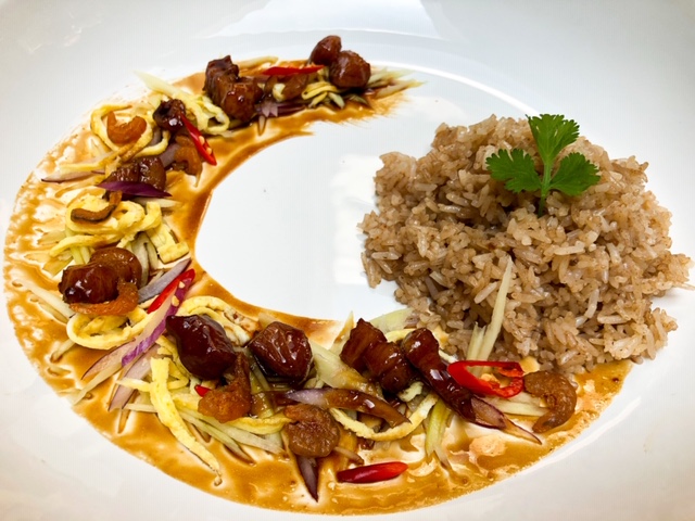 Khao khluk kapi originated in Central Thailand, and it is typically served as a lunch dish in Thailand. Foreign visitors to Thailand may not be aware of the dish’s existence.